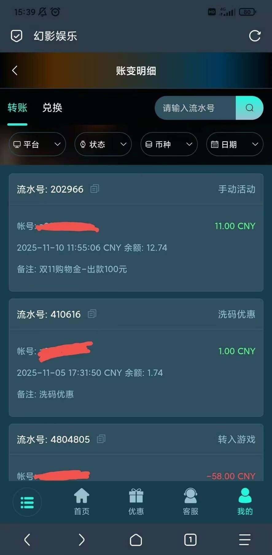 【幻影娱乐】双11彩金