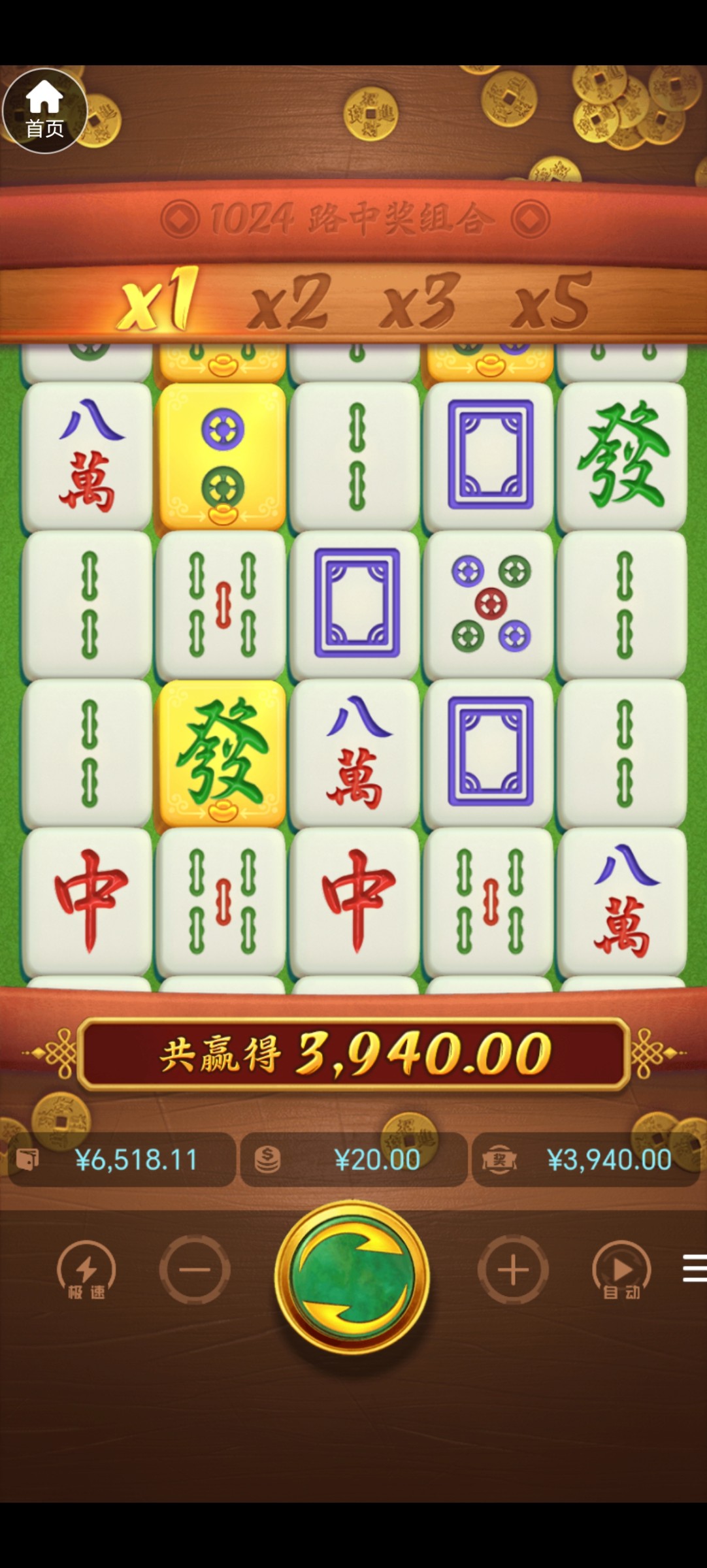 麻将胡了,20一拉给了200倍,有一转差个发财,2排,这要是给个1000倍多好