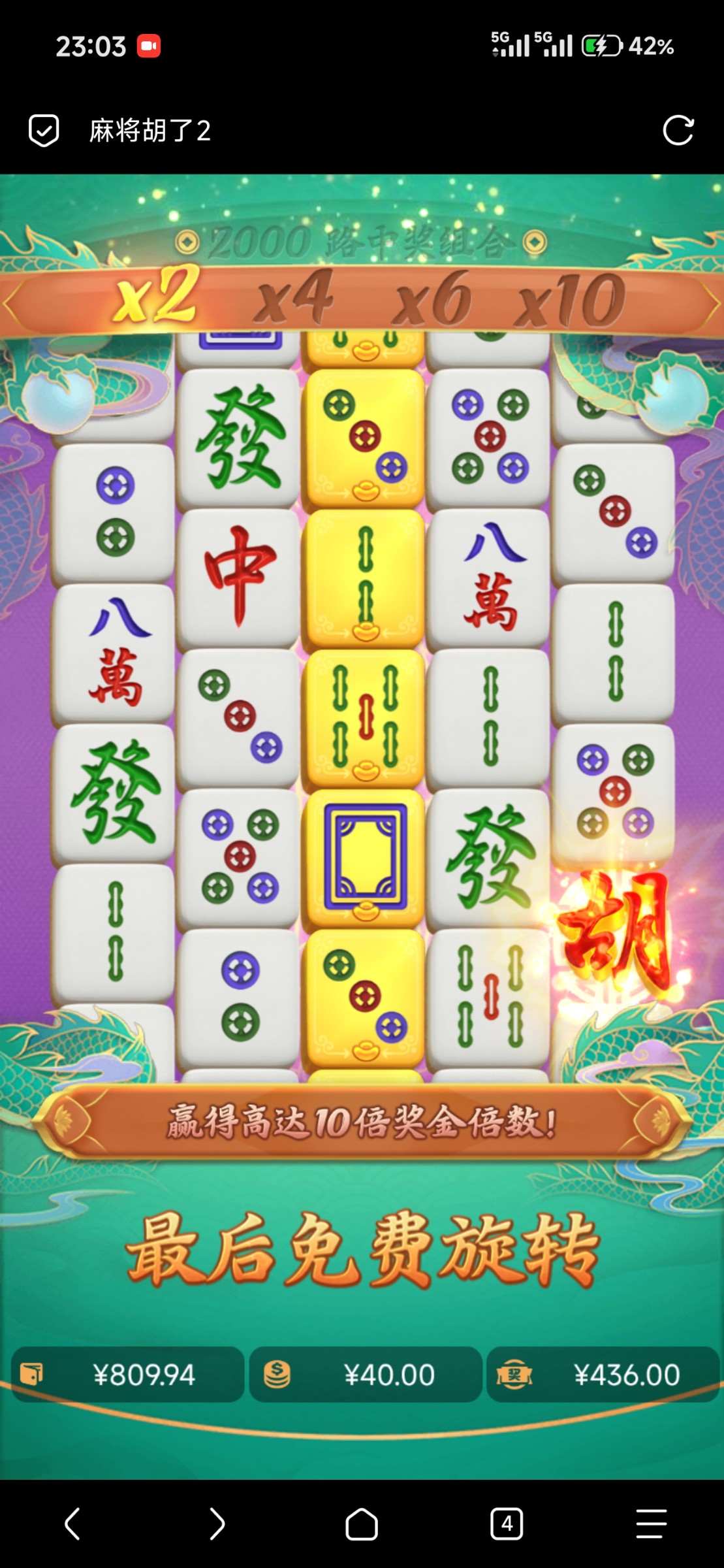 前天晚上麻将2拉了个300倍,两个一百倍
