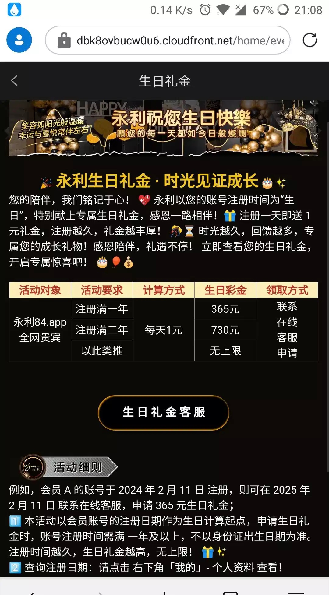 关于注册日申请生日彩金,这两个网站注册满一年的,可以去找客服申请生日彩金,以注册日为准。(我都是24年11月注册的,以为过期了,没想到可以申请,满足条件的老哥可以自行选择。)