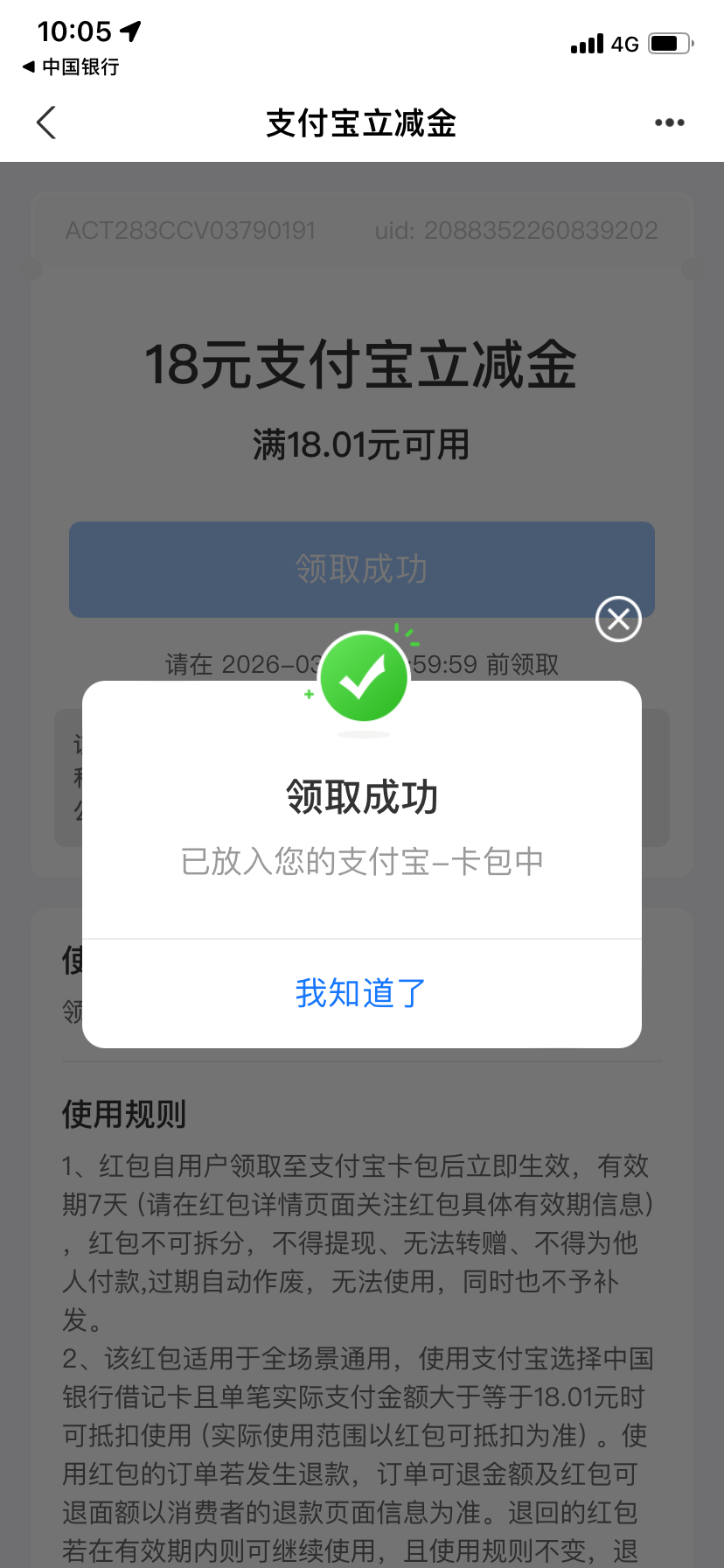 2,中国银行搜索银证礼上礼,点击签约抽奖,支付宝18立减金