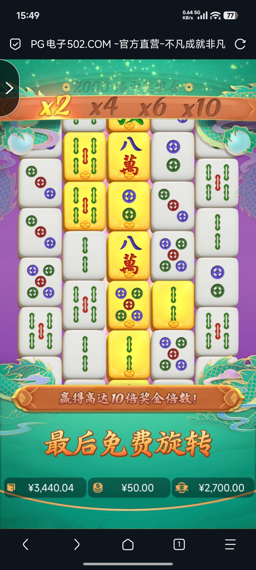 现在的PG电子全是包杀接口,充了1w开80一直拉麻将2,胡了四次,没上过30倍的下注金额,好恶心,好几个平台都是这样。PP更杀买免费游戏没赢超过本金过。还有什么电子好玩一点