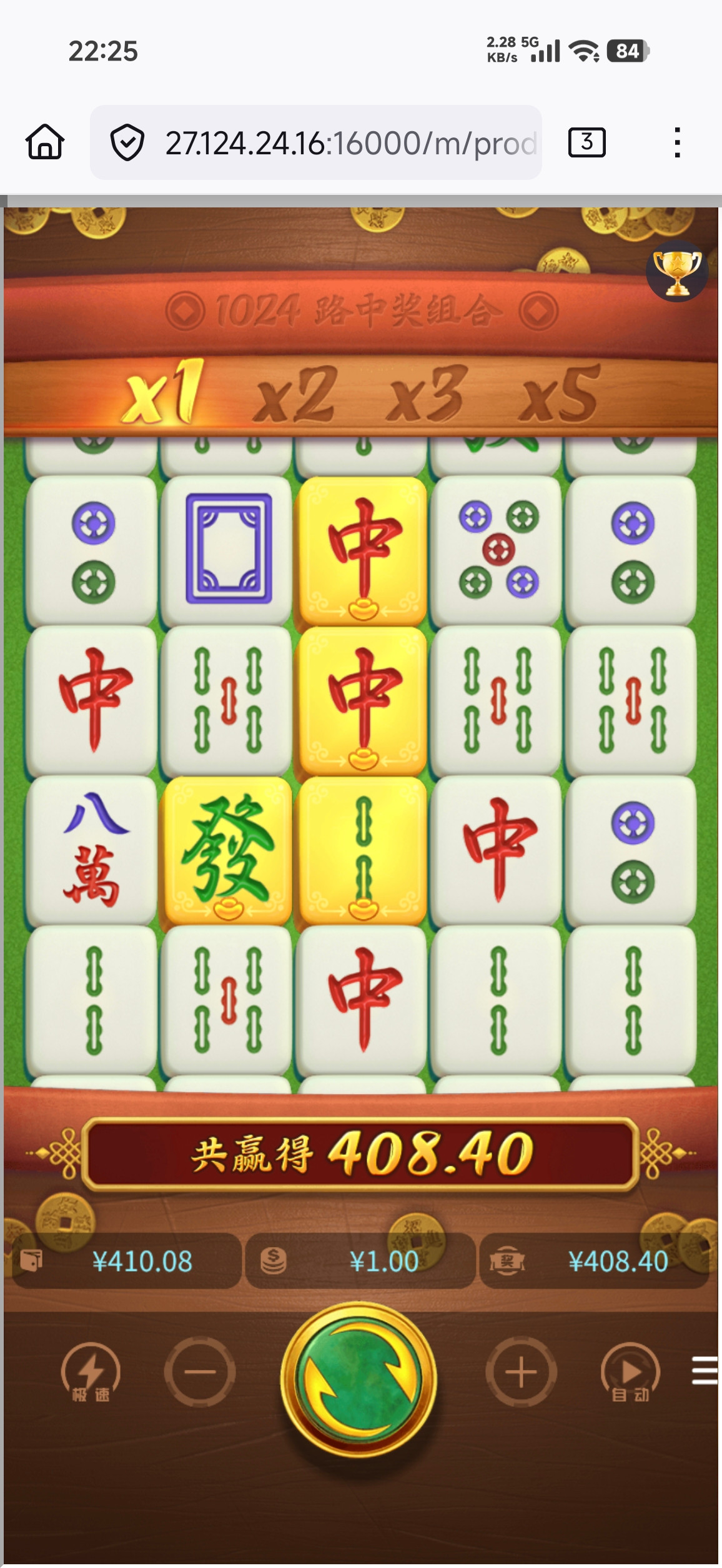 最后剩下两块进胡 400杯 昨天开4块的时候,最高40倍都没有(1000块直接吃完)