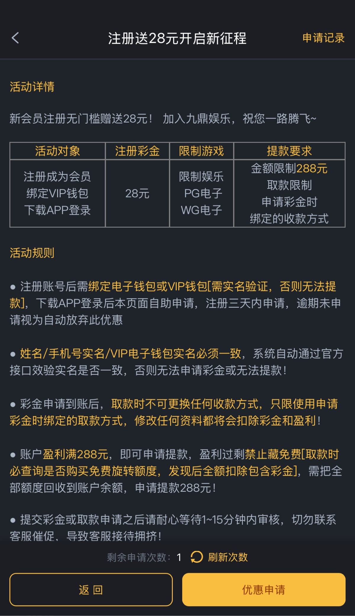 注册绑卡下载APP,优惠里面申请,几分钟到,限制pg电子,应该是288最低最高提现
