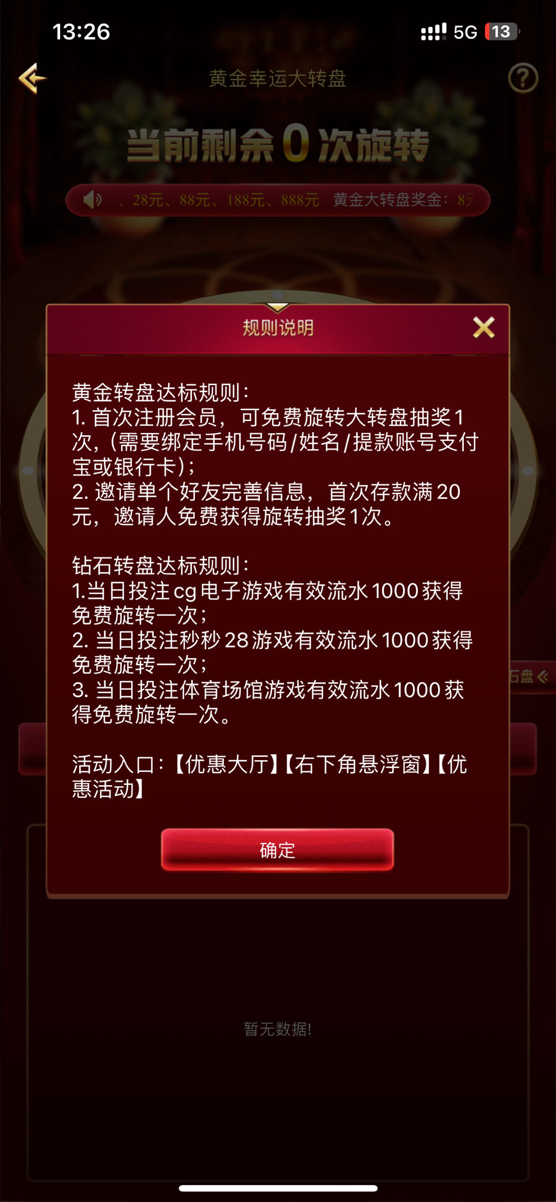首次注册会员,可免费旋转大转盘抽奖1次,(需要绑定手机号码/姓名/提款账号支付宝或银行卡)
