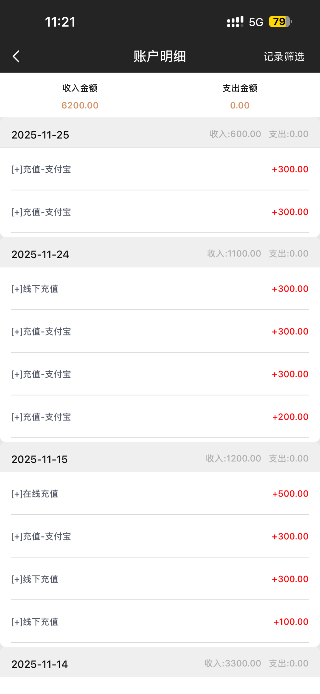 充值了六百彩金了,路人wang082