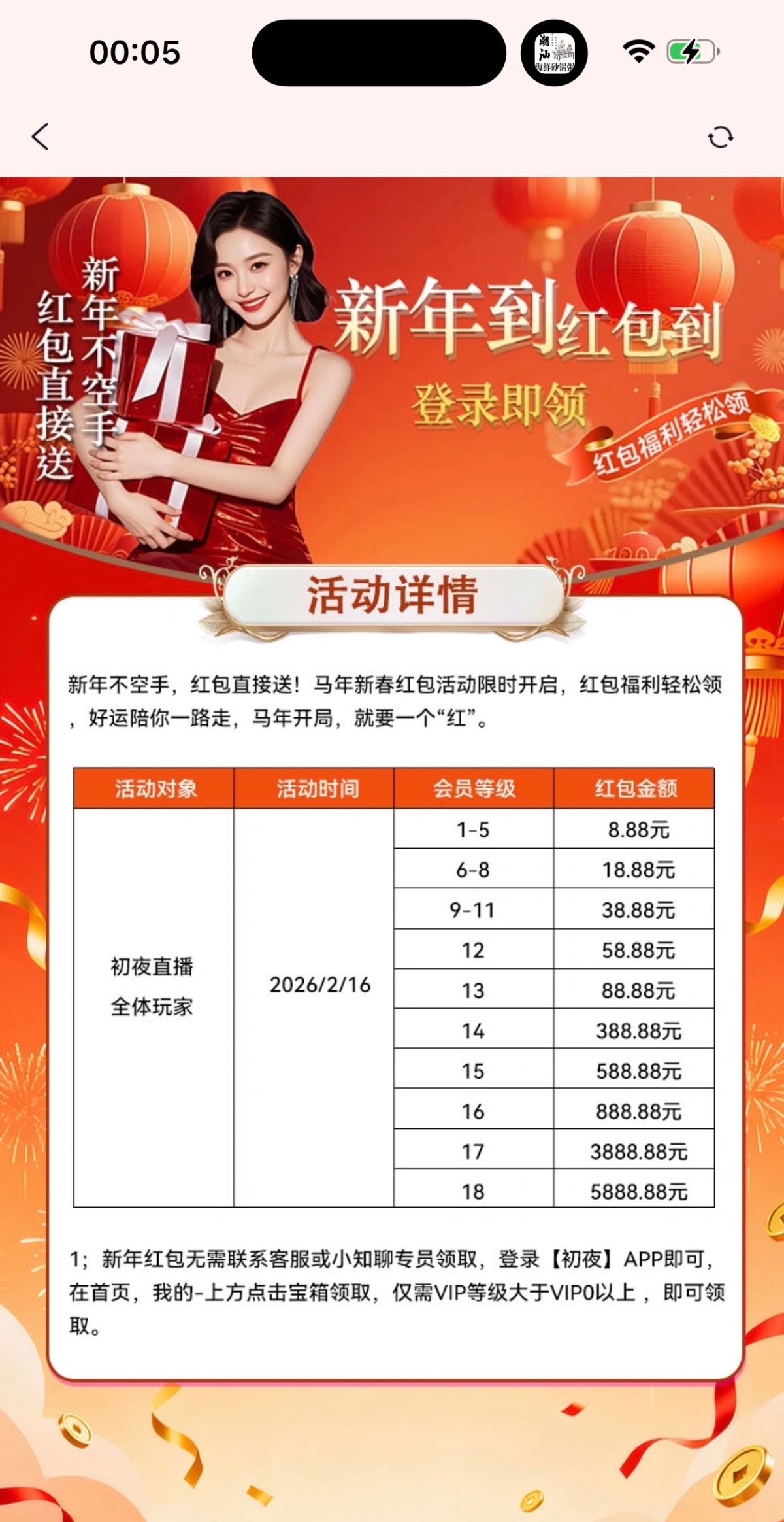 【初夜直播】新年等级彩金