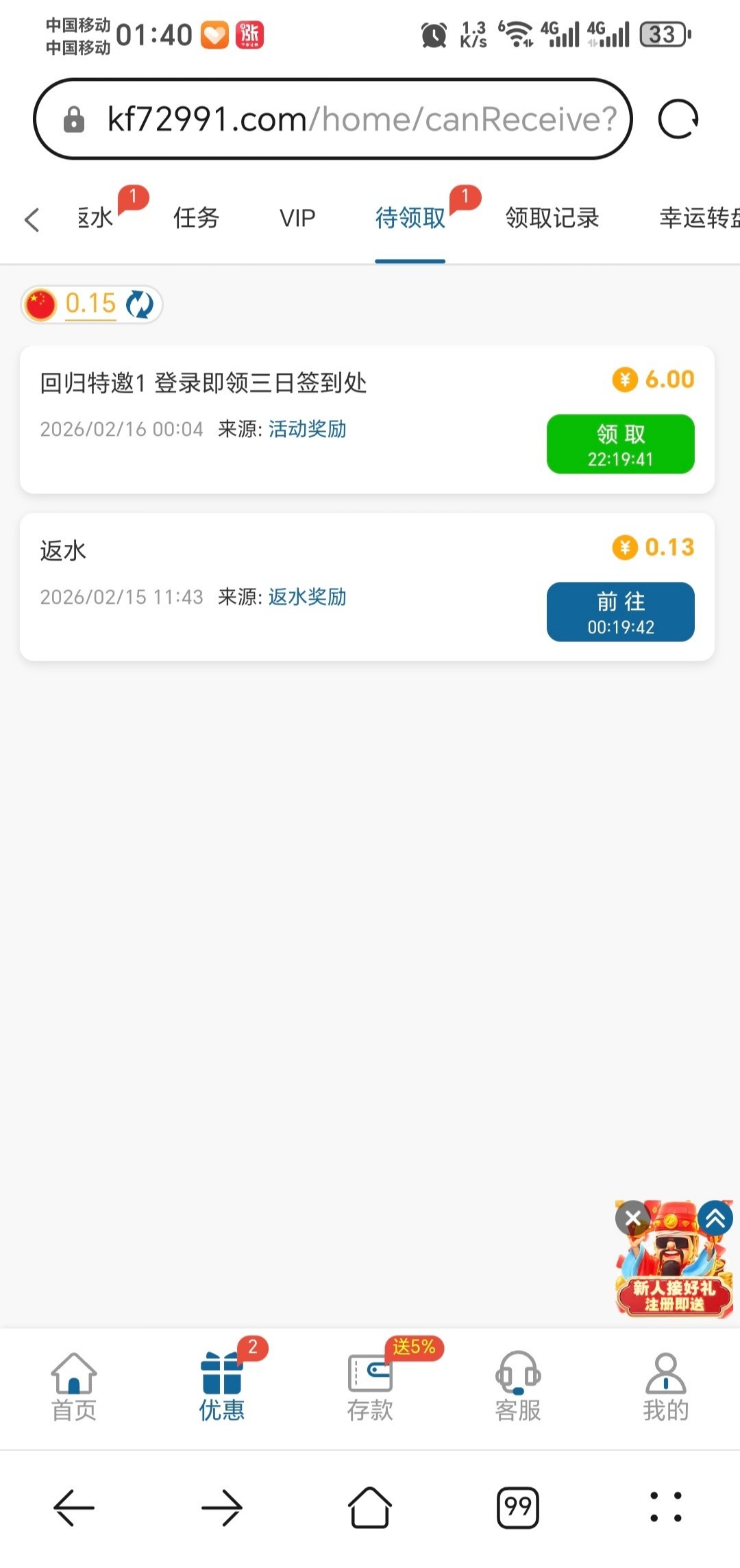 前两天电话回归彩金 联系三天每天能领6,我两个号都领了链接72991.com