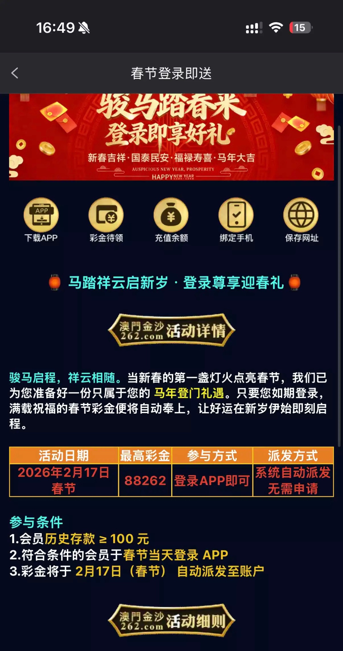 【金沙262—✅—除夕登陆彩金】