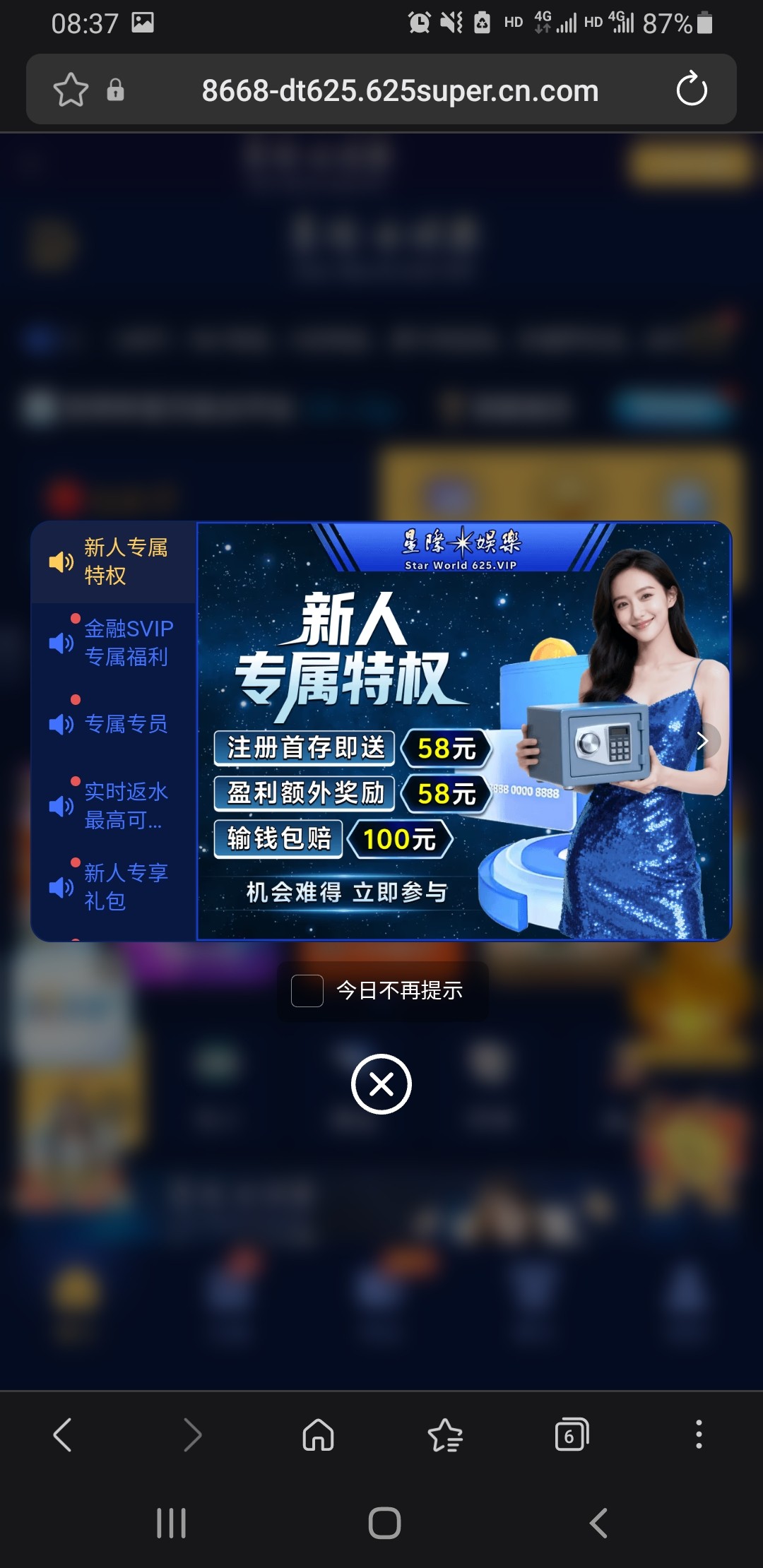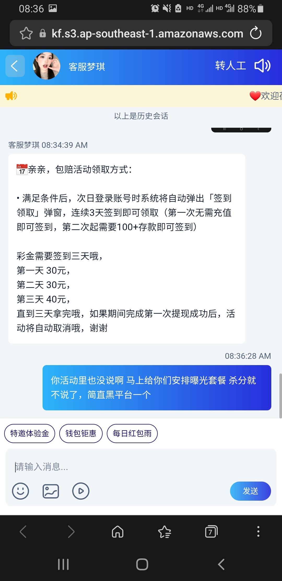 大家收到星际625短信或者电话的活动里100+58一水的千万别去玩,这b台子完全代码台,控的死死的 身边好几个人玩也才一个人打出来 而且那人也才赚他几十 杀分就不说了 活动里新人包赔100 分三天领 也只能领第一天30 后面再领就要充值100 老哥们 千万别给这b台充值送钱了